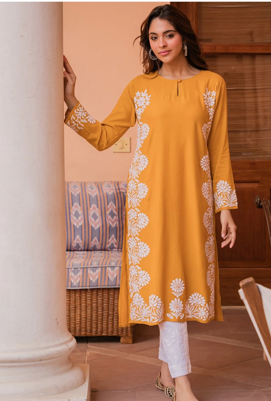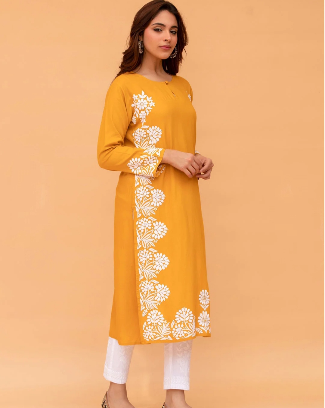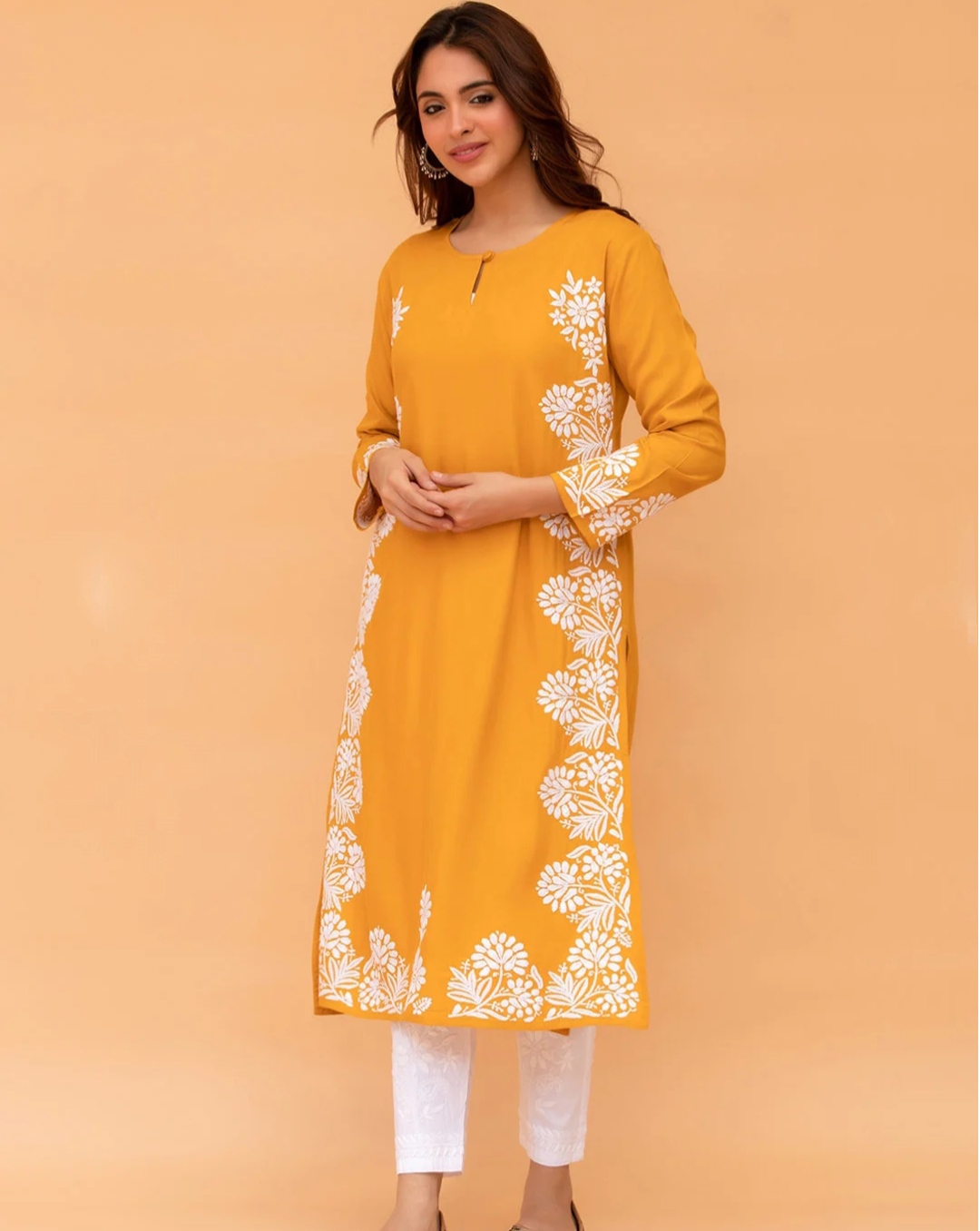 Immerse yourself in the elegance of nature-inspired luxury with our latest Golden Yellow designer outfit. Thoughtfully crafted with intricate embroidery and tailored from premium-quality, soft, and breathable fabric, this piece offers a perfect harmony of comfort and sophistication.