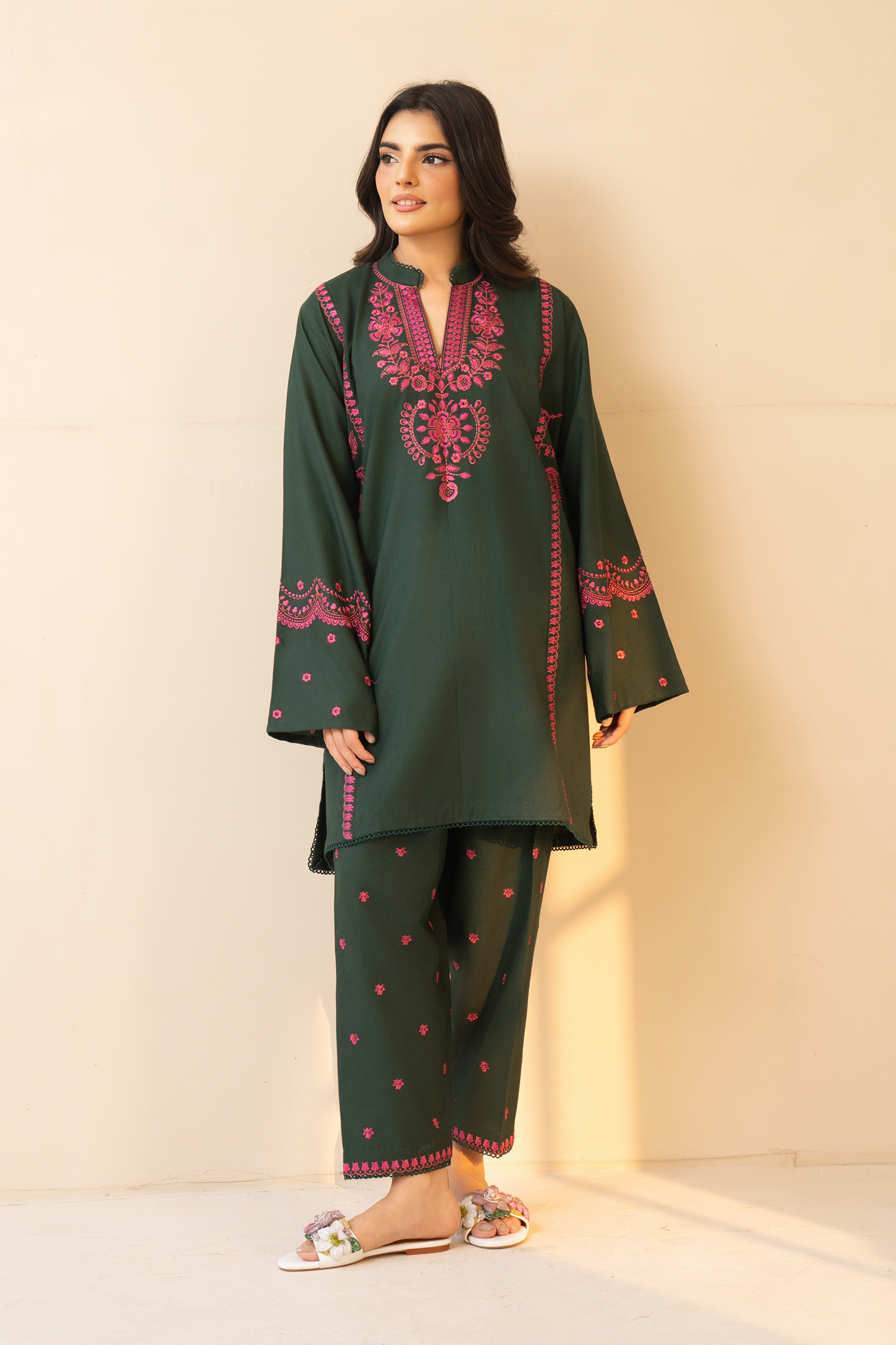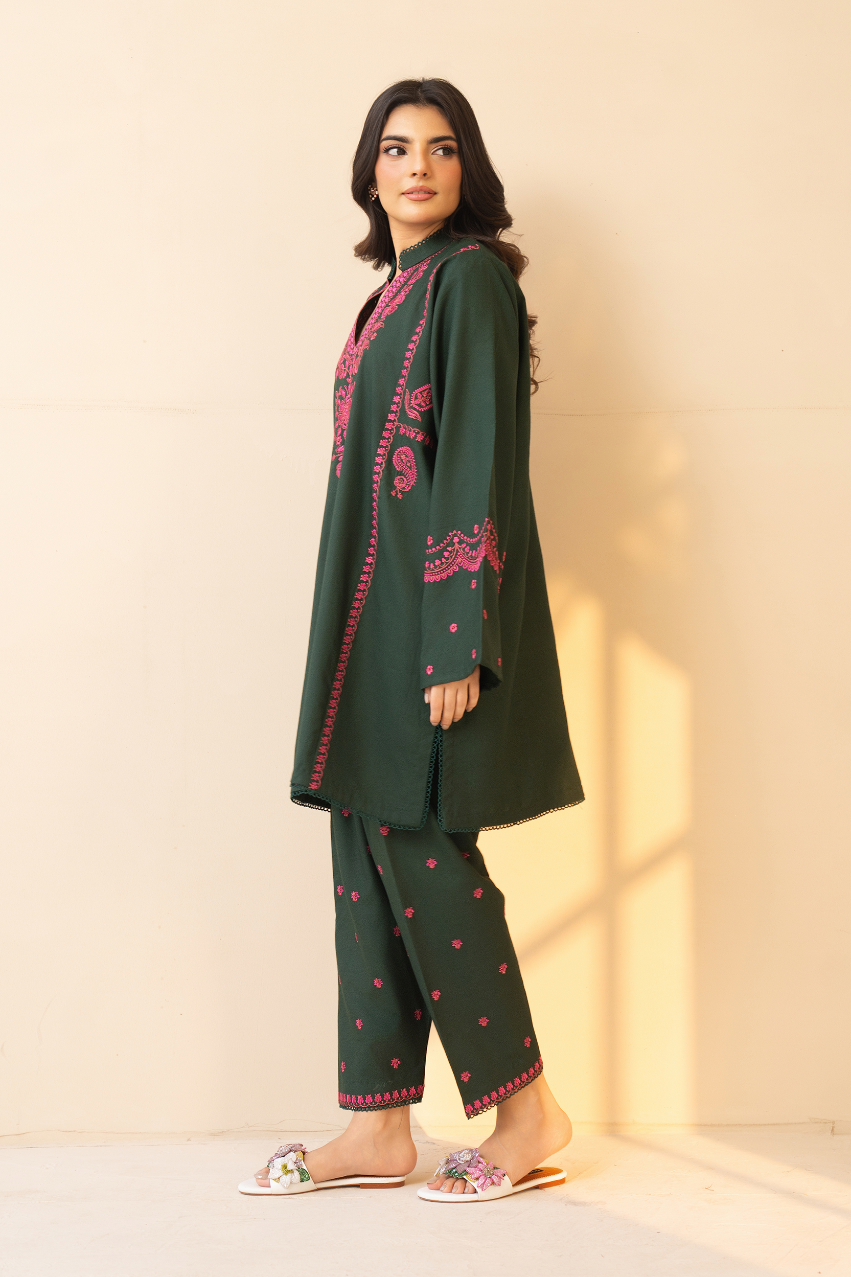 The rich green hue symbolizes freshness, grace, and understated opulence, while our fine stitching and meticulous detailing elevate it into a statement of timeless beauty. Every element is designed to enhance your presence with effortless charm and refined style.