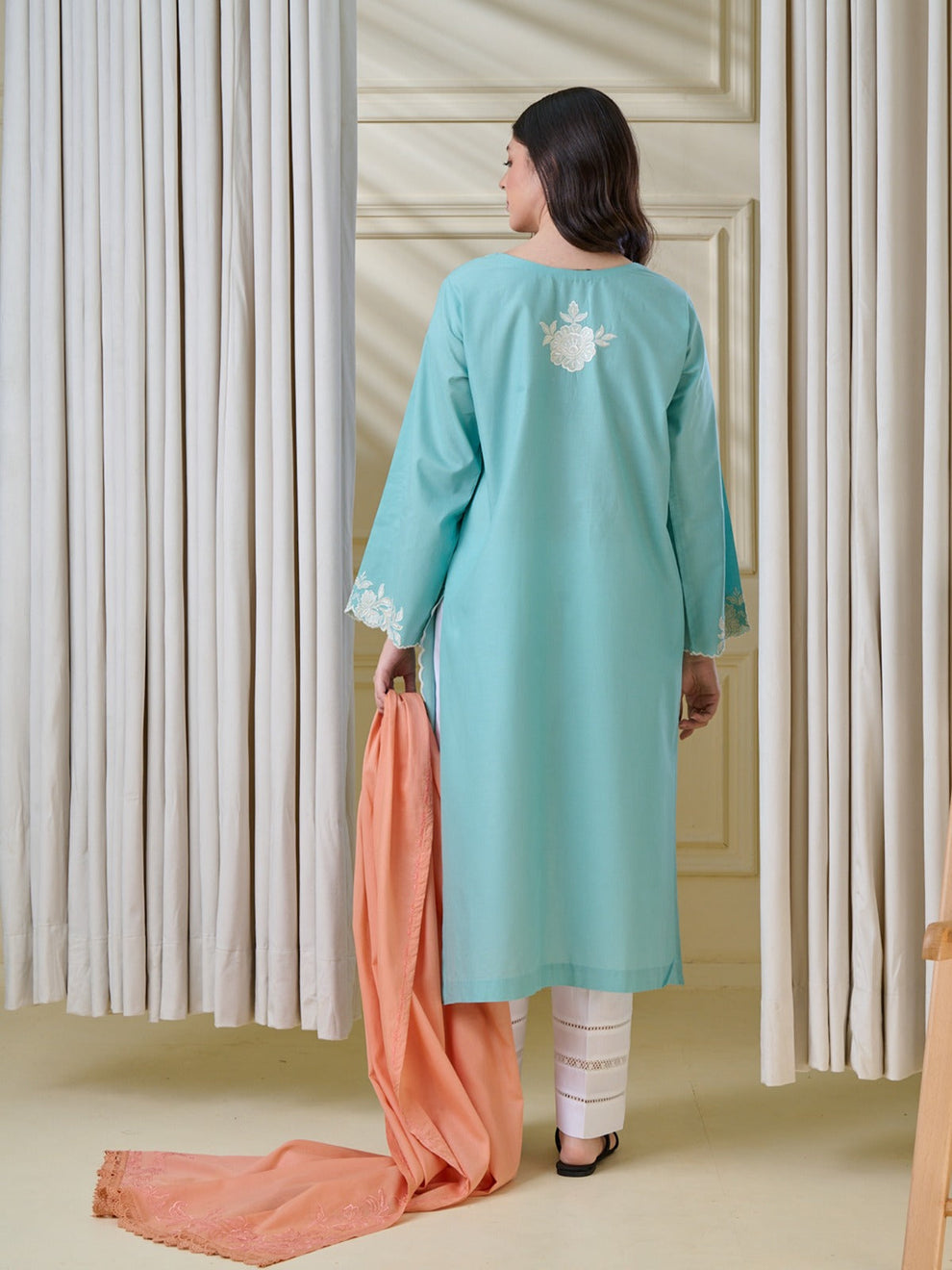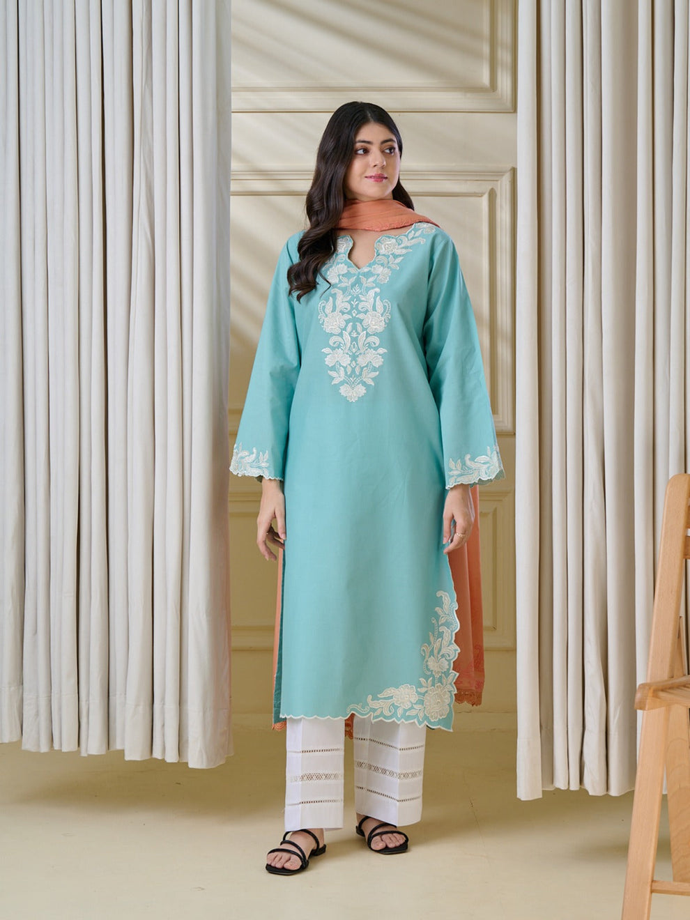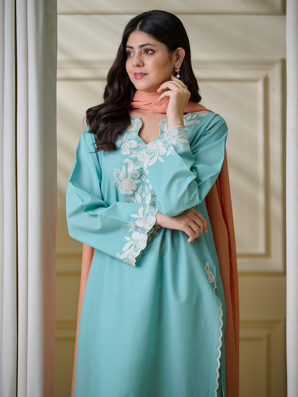 Indulge in timeless luxury with our exquisitely crafted, heavily embroidered floral outfit, designed to make a statement of refined elegance. Adorned with vibrant, intricate detailing, this masterpiece reflects exceptional artistry and superior craftsmanship. The fine, loose-fit stitching ensures effortless comfort while maintaining a graceful, high-end silhouette.