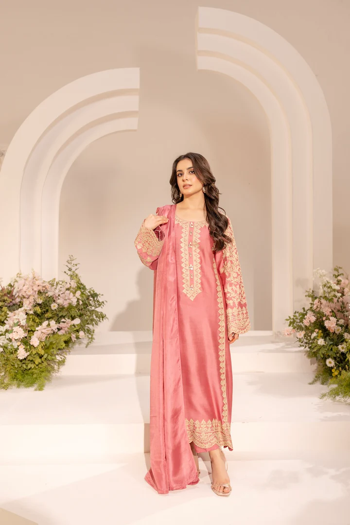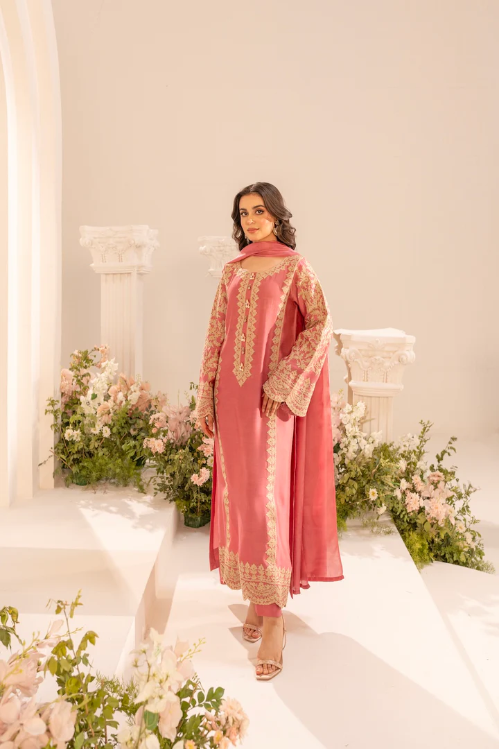Designed in a fine, loose-fit silhouette, this ensemble drapes effortlessly, offering exceptional comfort while maintaining an elevated, couture finish. Perfect for festive occasions, formal gatherings, and statement appearances, it is a piece that transcends trends and seasons.