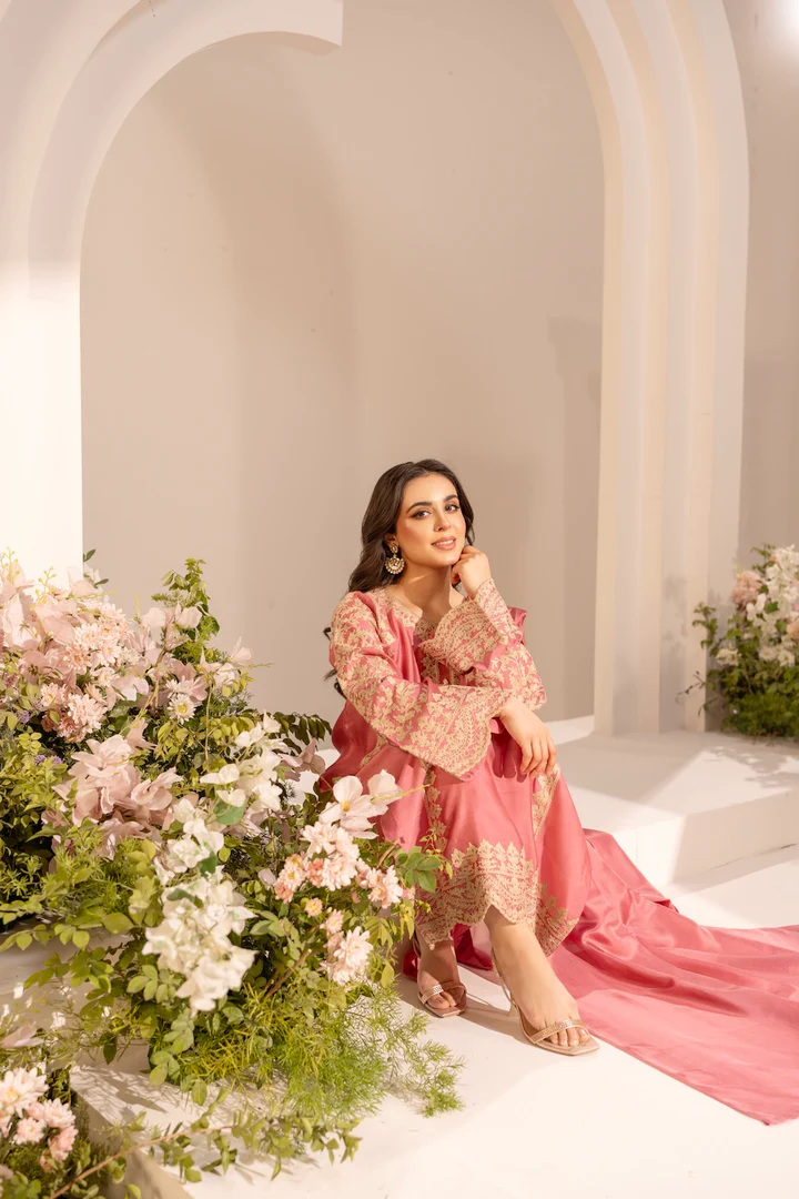 Step into refined elegance with our peach Kashmiri Ari embroidered outfit, a graceful harmony of luxury and timeless artistry. Set against a soft peach base, the heavy multi-color floral embroidery is meticulously handcrafted using traditional Kashmiri Ari work, creating a vibrant yet sophisticated visual appeal.